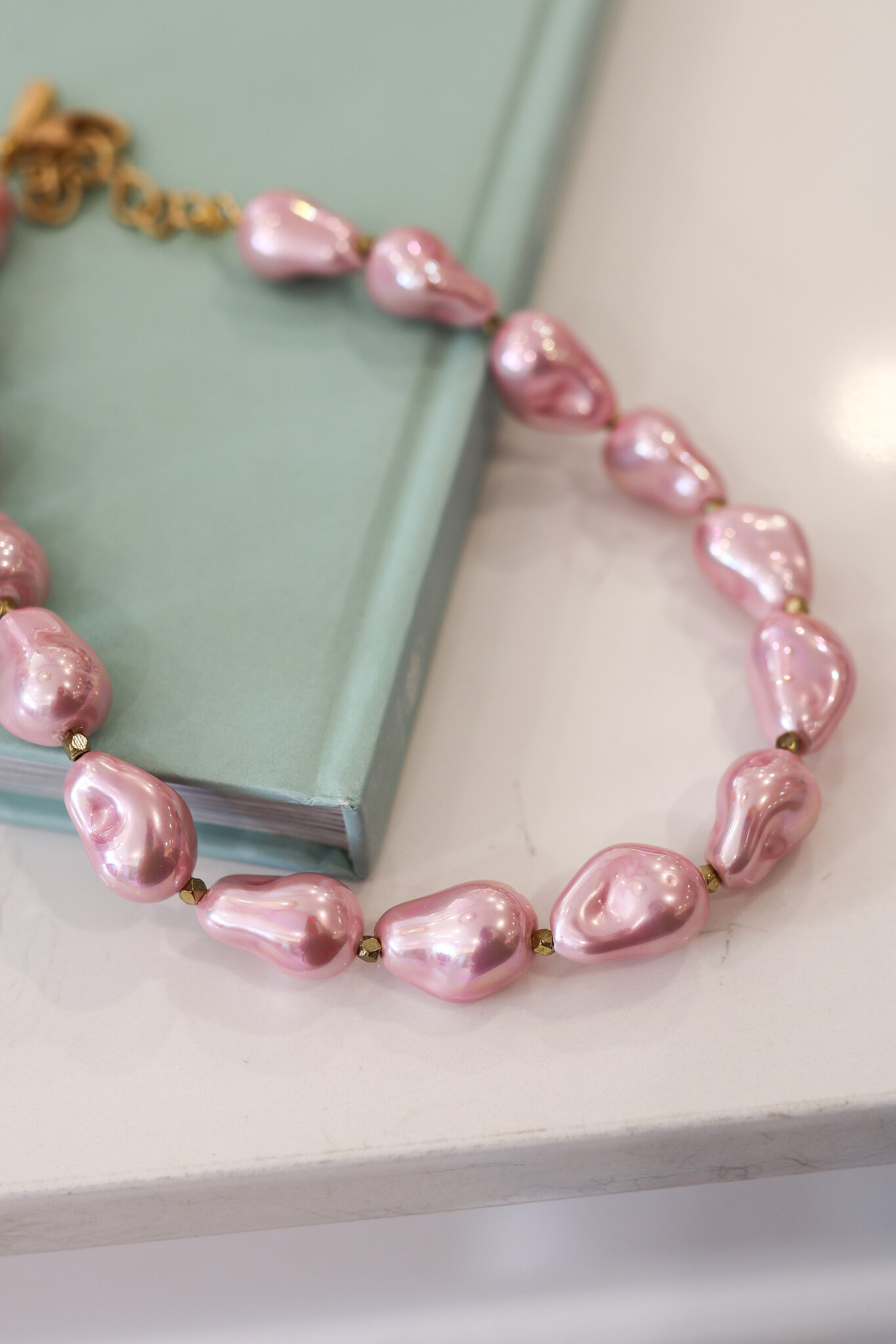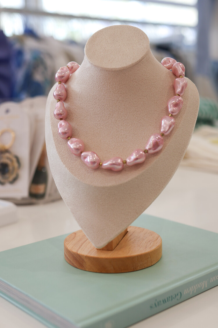Large Shell Pearl Spaced Shell Baroque Pearl Necklace