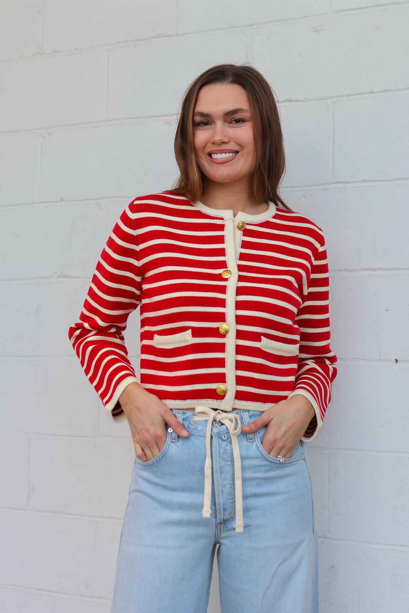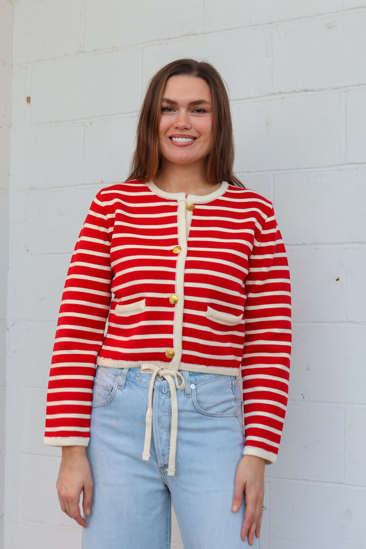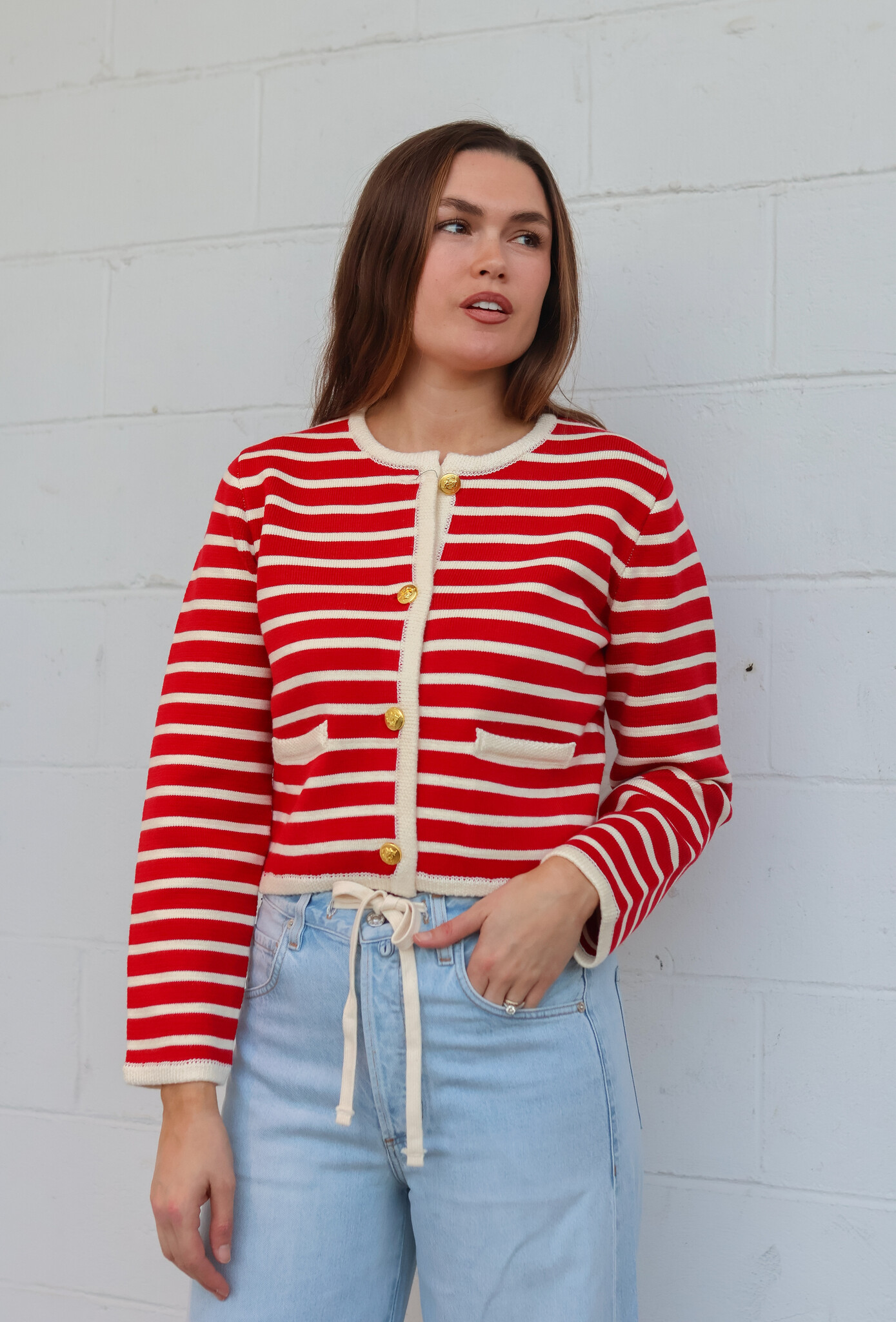 Made entirely by hand from 100% cotton, the Courtney Crochet Cardigan features a boxy, cropped fit with retro graphic appeal and timeless texture. Shell buttons catch the light—whether worn partially fastened or layered open.