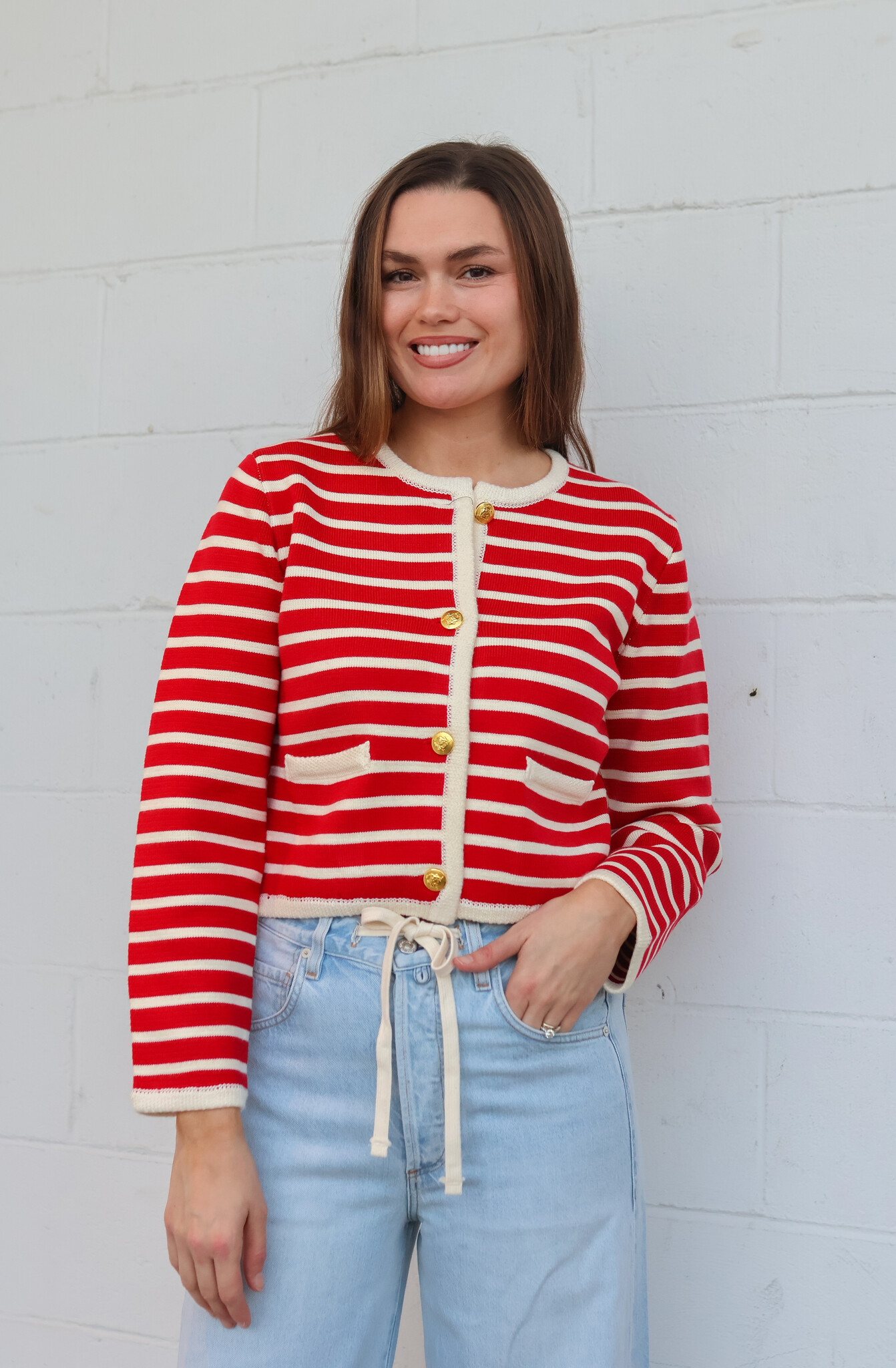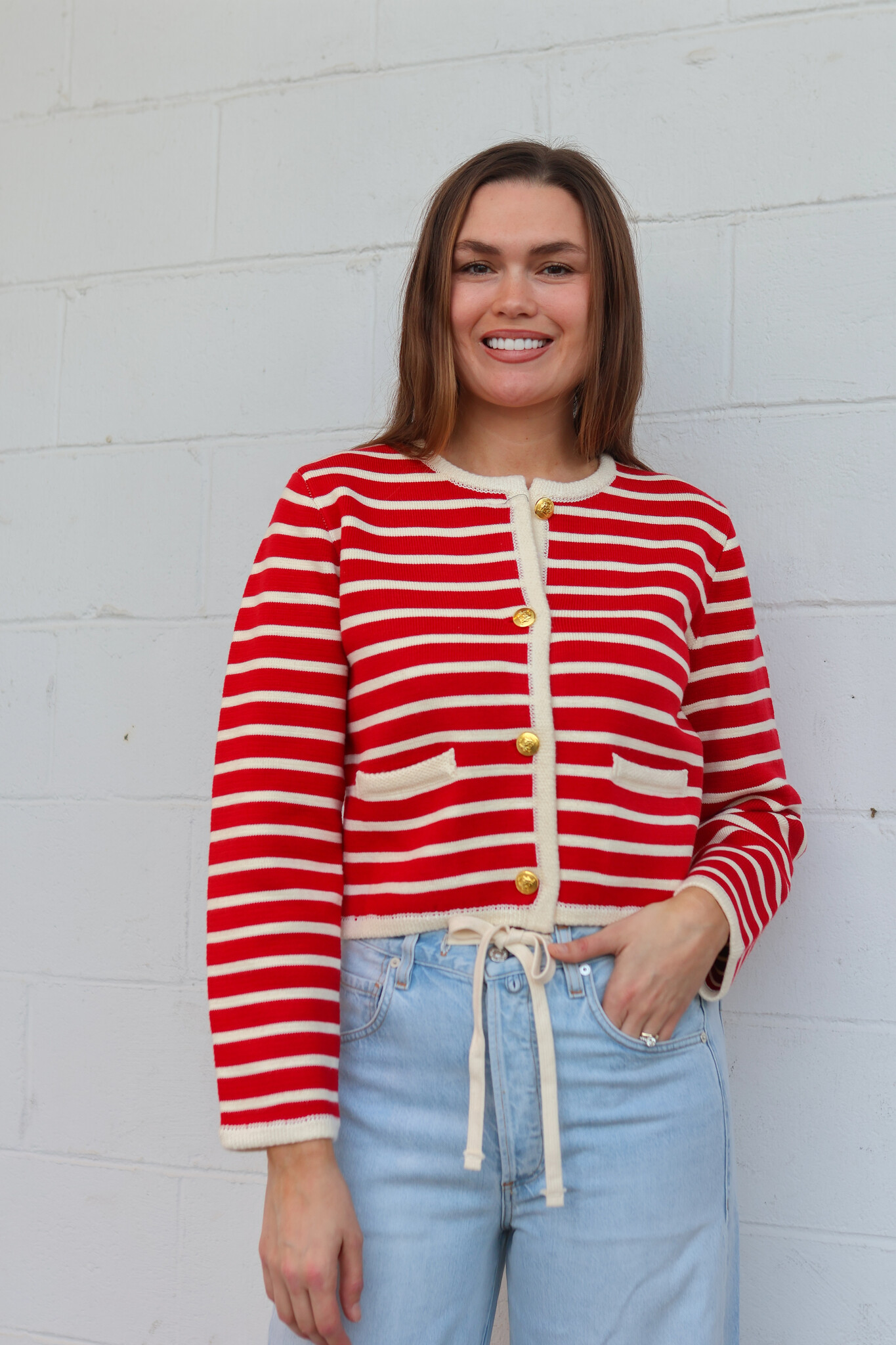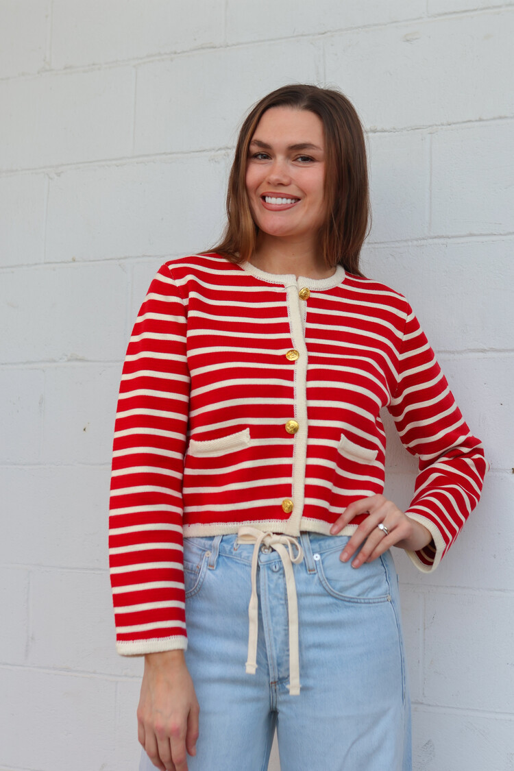 Made entirely by hand from 100% cotton, the Courtney Crochet Cardigan features a boxy, cropped fit with retro graphic appeal and timeless texture. Shell buttons catch the light—whether worn partially fastened or layered open.