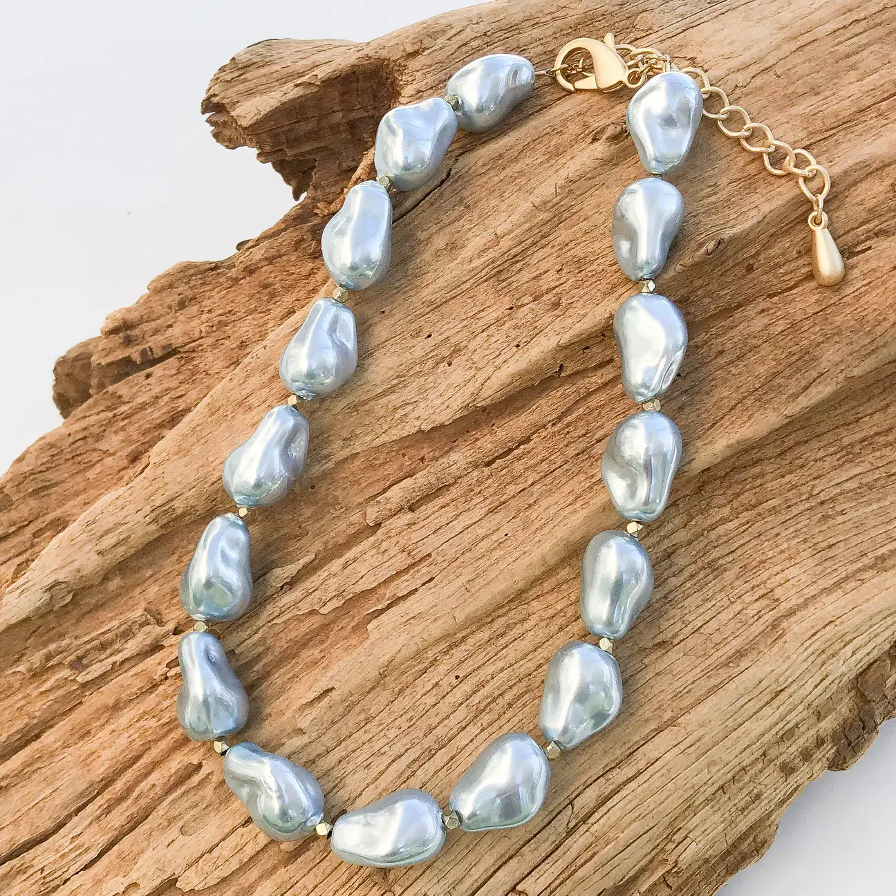 Shell Baroque Pearl Studded Necklace w/ Extender