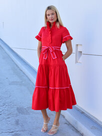 Resort ready! Crisp cotton meets our classic tunic neckline, and darling button front closure to create an elevated dress that is ready for all of your warm weather adventures. Plus, it comes with a removable belt with a sweet woven buckle to give shape.