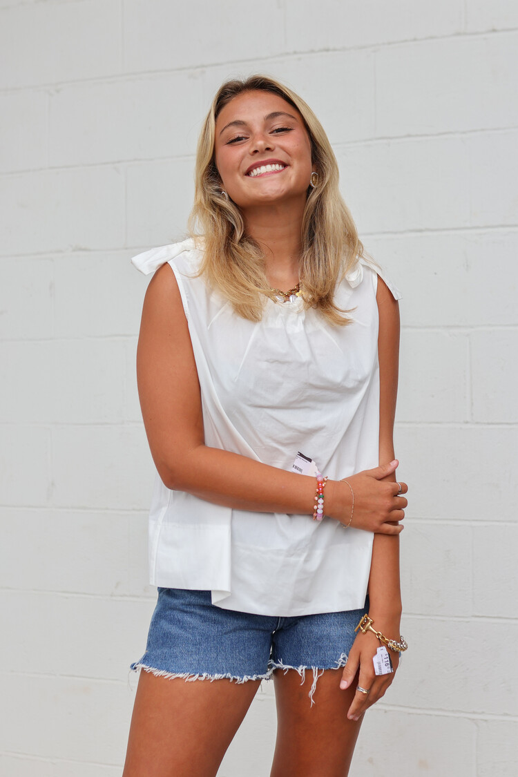 When a plain tee doesn’t quite cut it, we’ve got you covered. The Camille Ruffle Tee is a flirty-meets-relaxed cotton jersey design featuring a classic crew neckline, flutter sleeve detailing, and relaxed dropped shoulder.