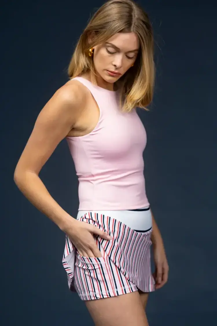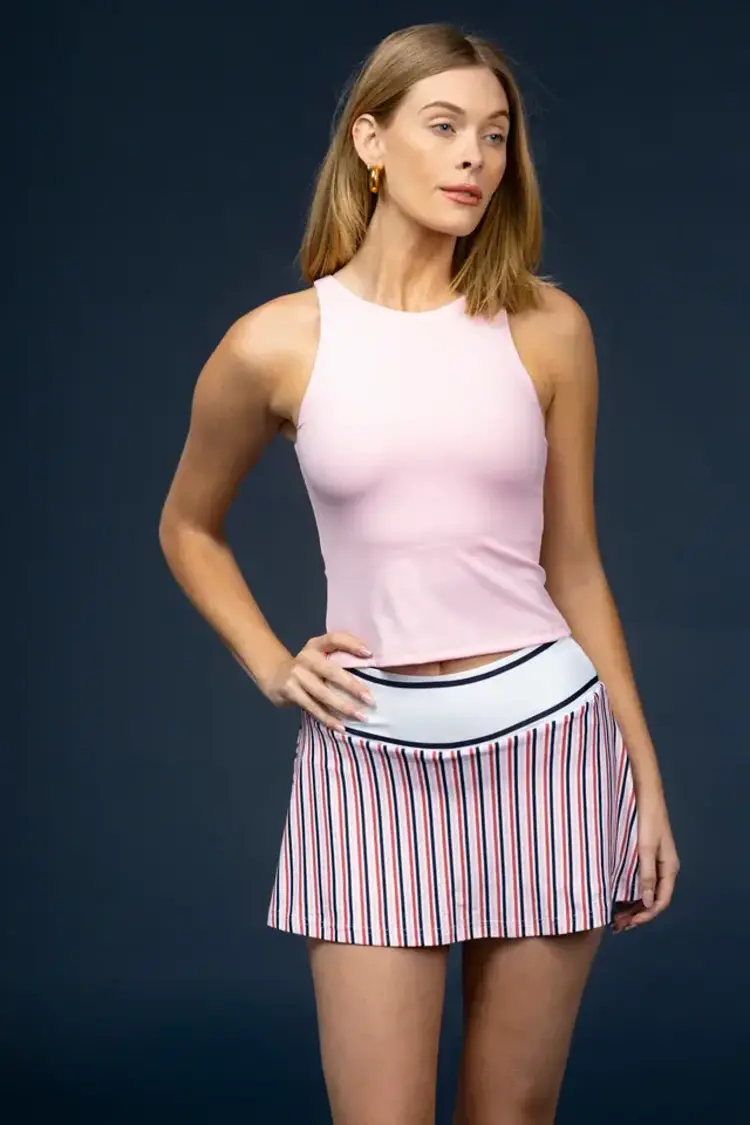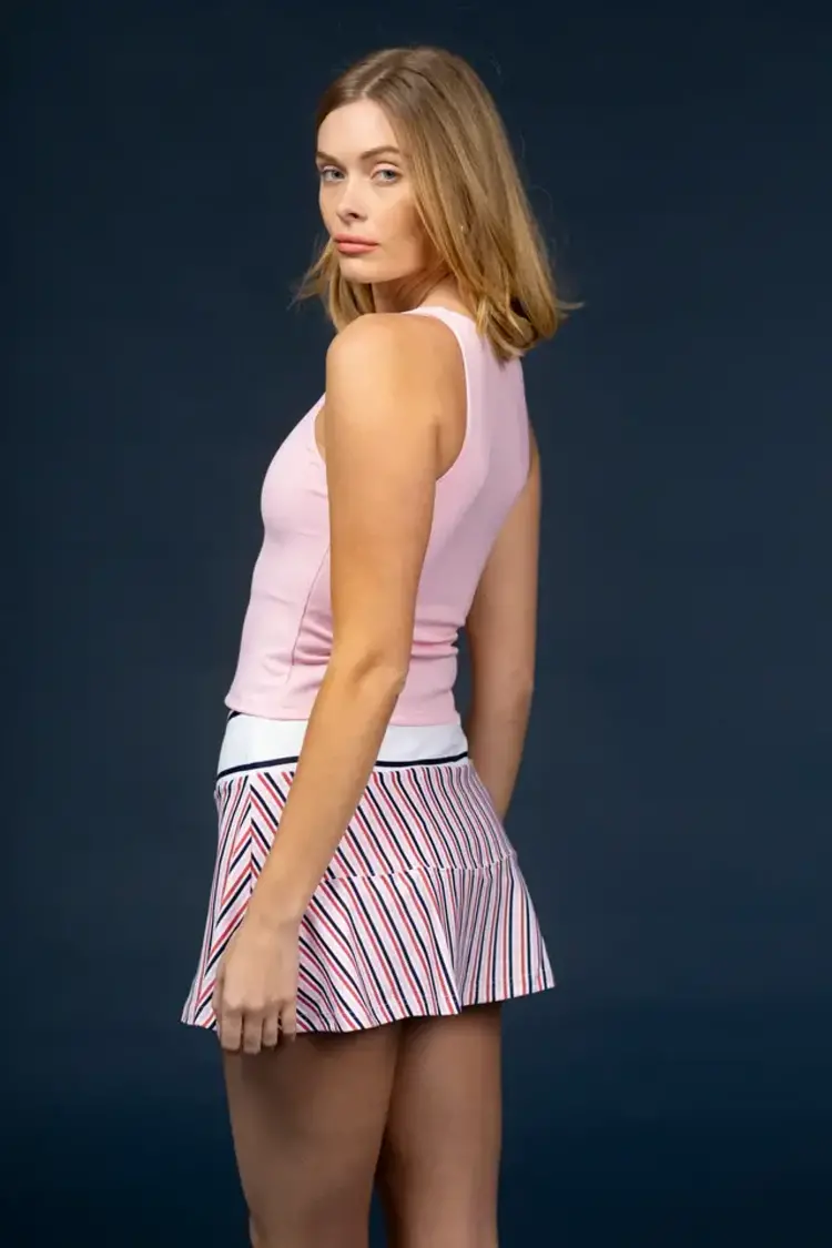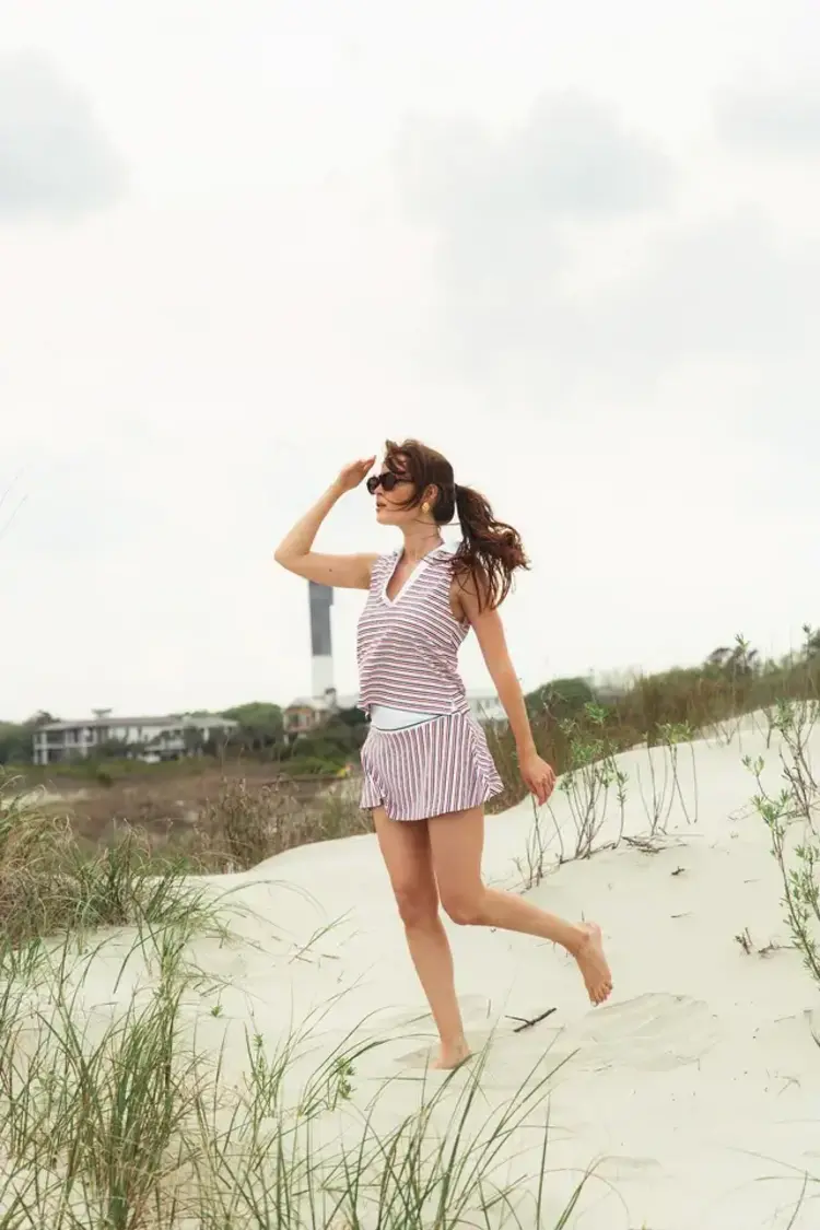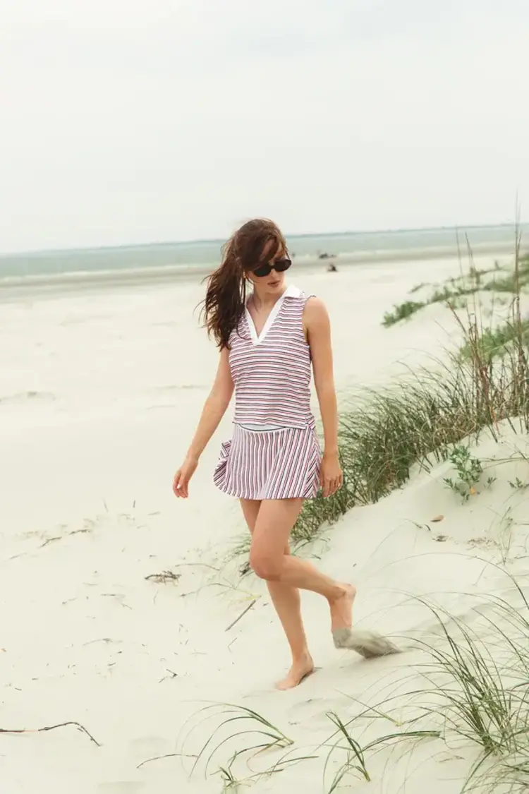 Introducing our newest fabric: Lux Thermal. Dara is an update to the classic sweatshirt with an open back detail and a quarter zip. Dara is finished with a rib band around the neck, sleeve cuff, and bottom opening. styled as a set with the Gavyn skirt.