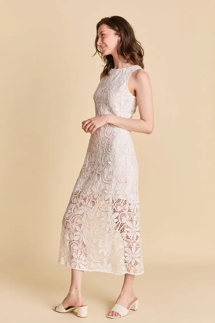 Crafted from luxurious linen, this dress showcases a sleek straight silhouette, refined round neckline, and a row of covered buttons that trail down the front side for a touch of polished charm. Framed with contrast trim in classic black and ivory!