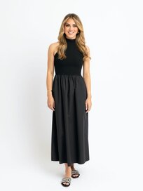 The Hampton Dress in Boot Print showcases an abstract pattern created from interlocking boot outlines, a nod to western heritage reimagined with modern flair.