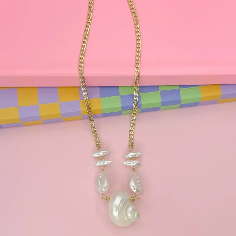 • Bring a little mermaid magic to your look with the Shell Yeah Necklace. Featuring a chunky gold chain, pearlescent shell charms, and a stunning spiral centerpiece, this piece is made for beach lovers and coastal daydreamers.