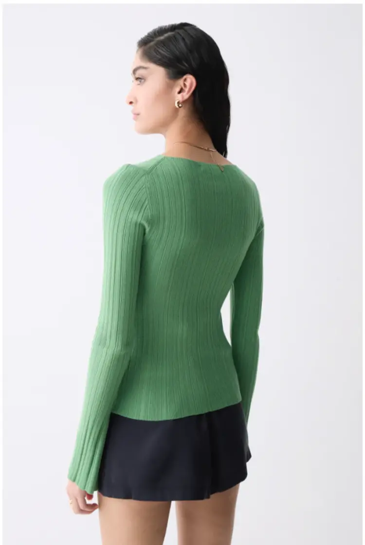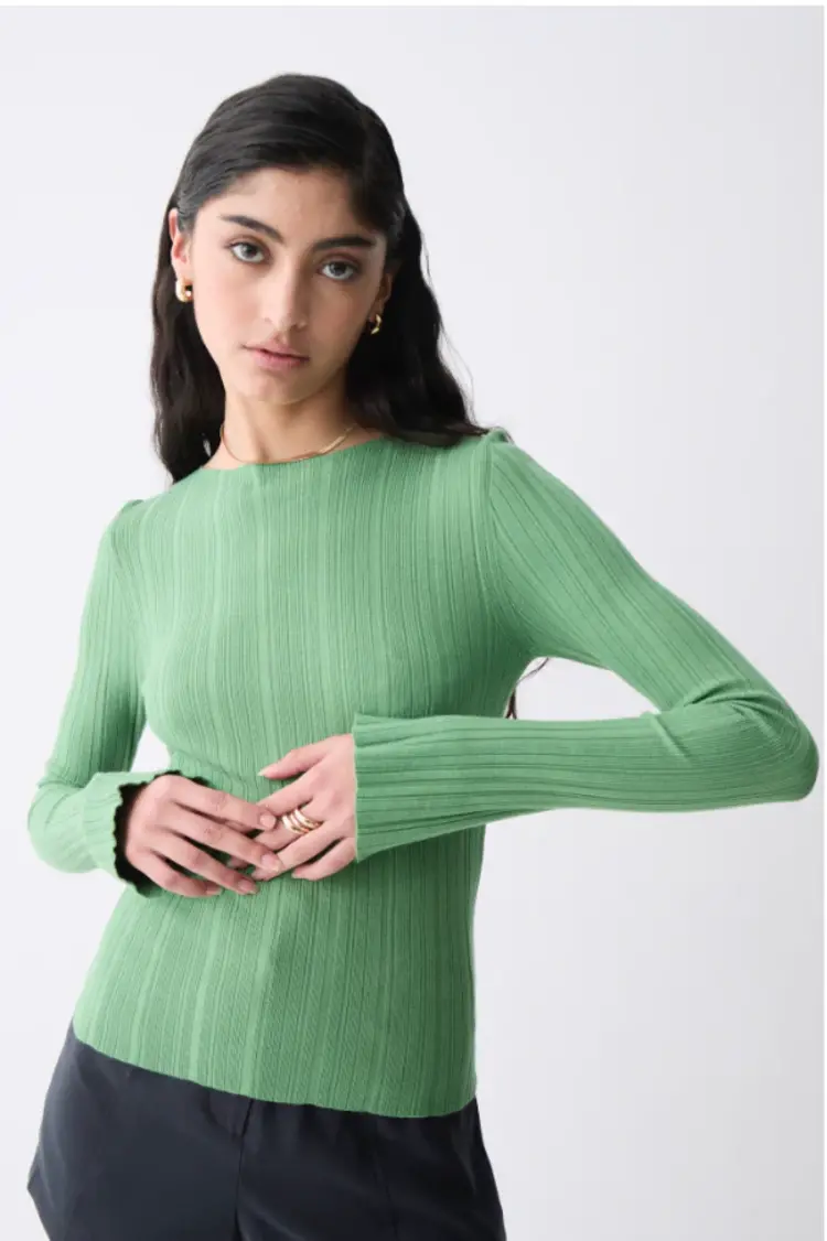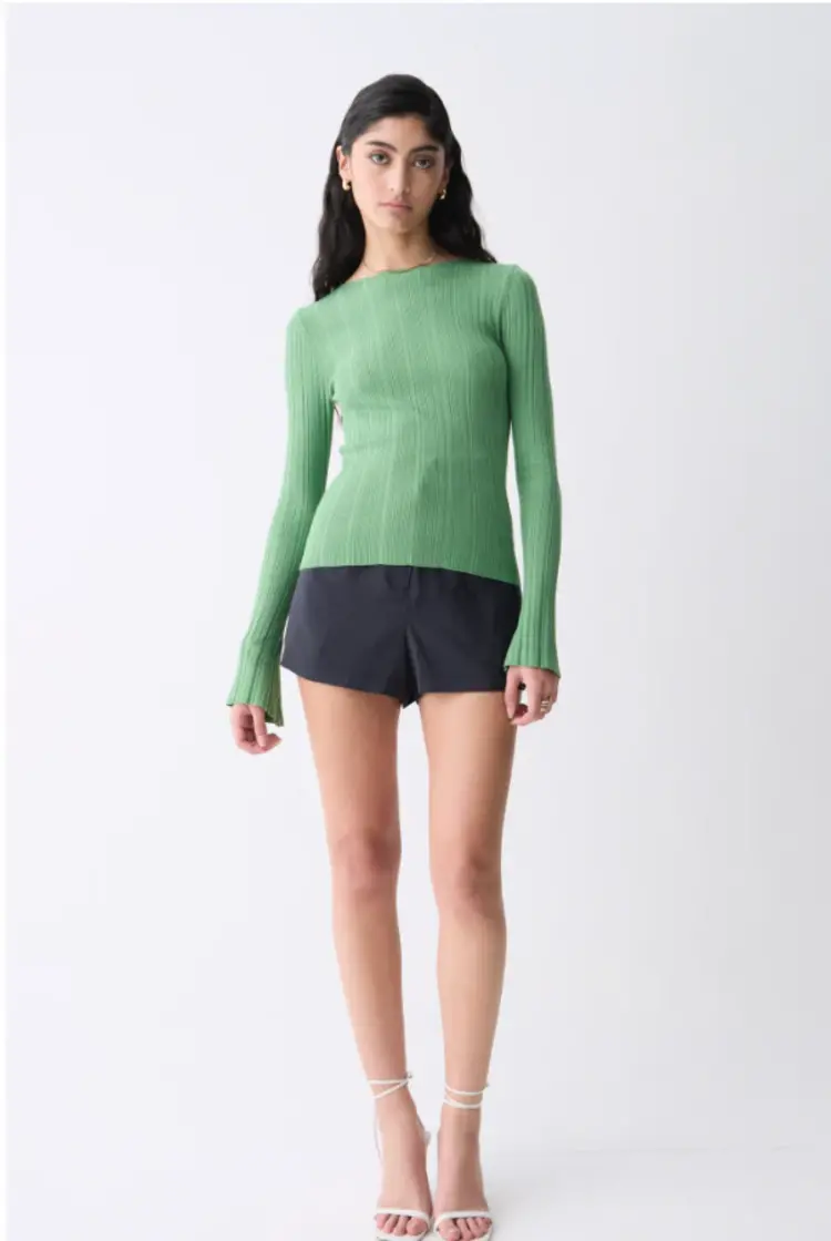 Flared long sleeves add a boho vibe to the Sines Sweater from Deluc. Crafted with lightweight soft yarns in a rib knit and featuring a figure-hugging fit with a round neckline. Wear with everything from jeans to skirts and shorts.