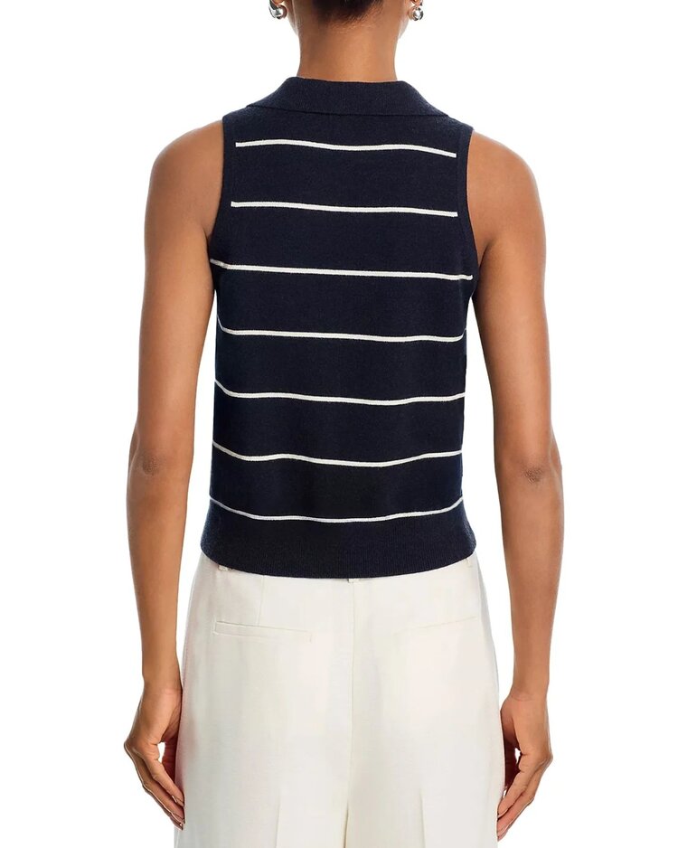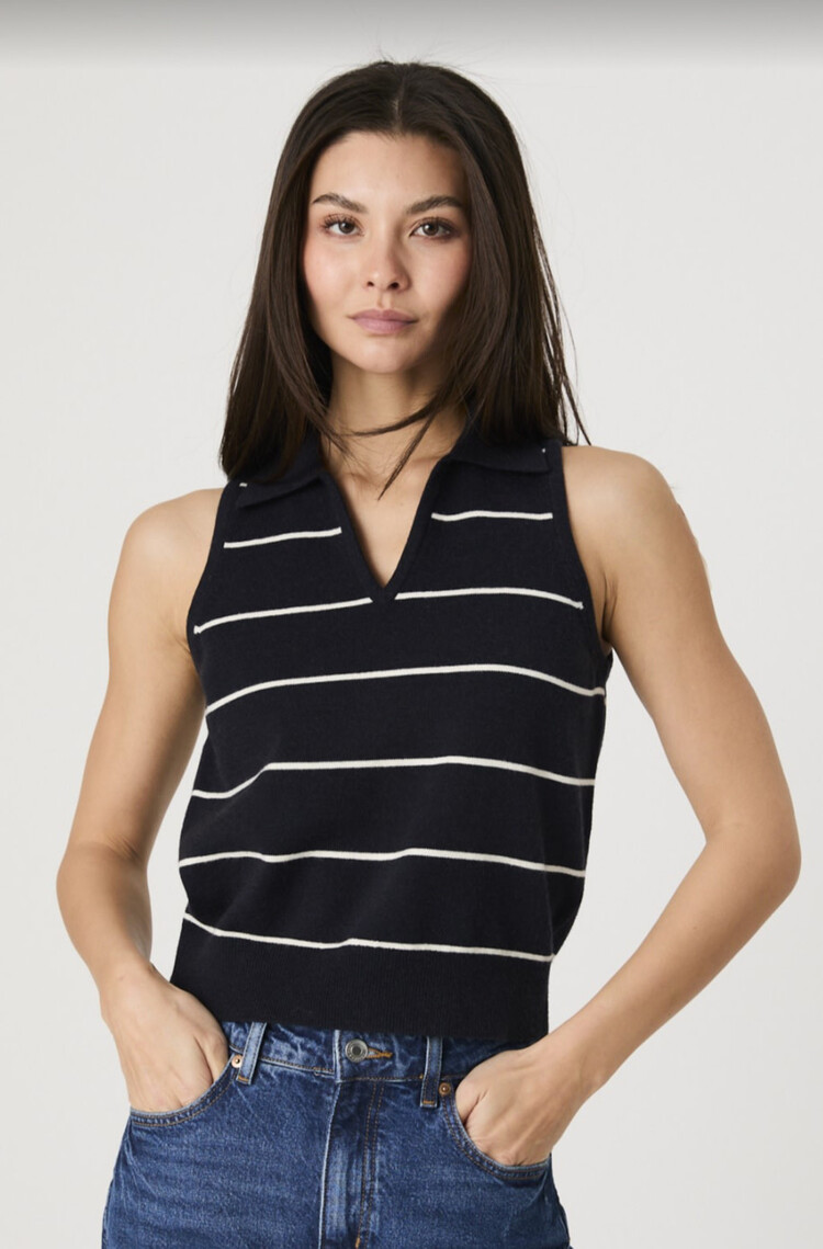 • Sloane is a sleeveless woolly top finished with a johnny collar exuding a nautical chic vibe.