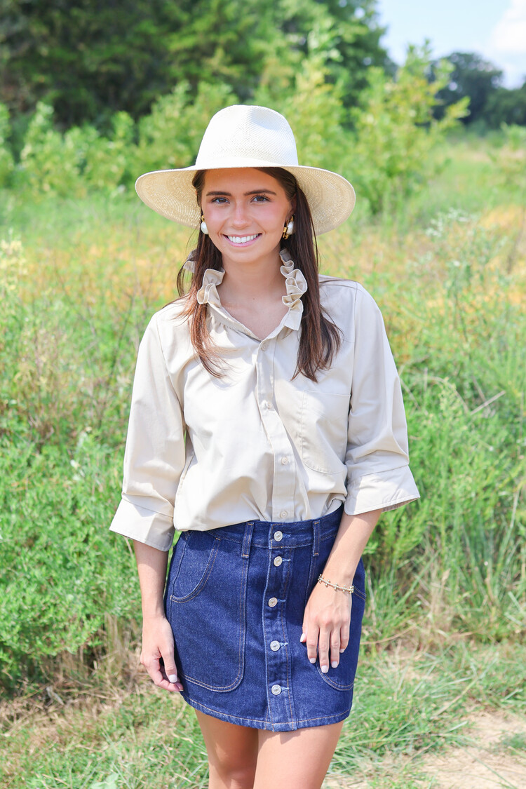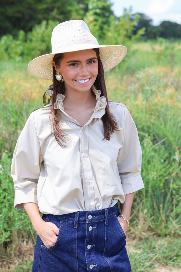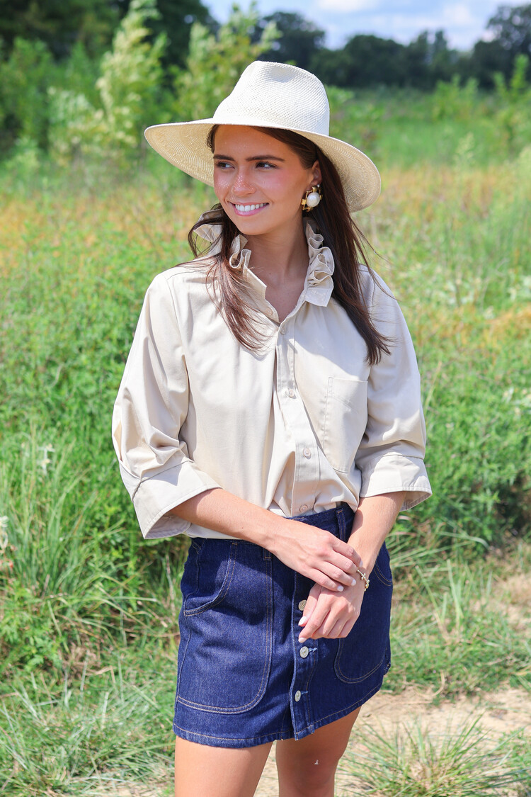 • Hey, Southern Lover! This Southern-inspired delight has 3/4 puff sleeves that sit right above the elbow. Adorned with our signature ruffle collar, this gal gives you the confidence you need to conquer the day.