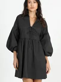 Constructed with dramatic balloon sleeves, hidden side pockets, and a flowy A-line silhouette, this dress moves with you for an effortlessly breezy feel. The delicate tie-front detail adds a touch of romance, while the crisp cotton fabric keeps it light!