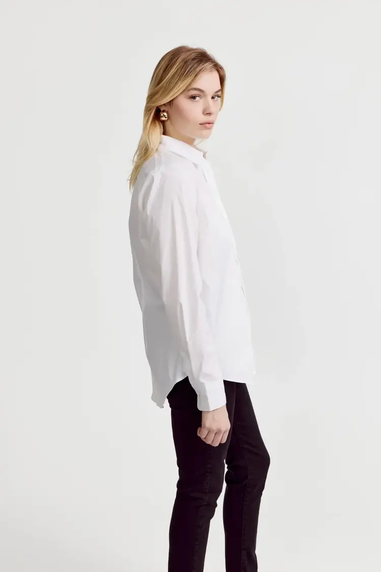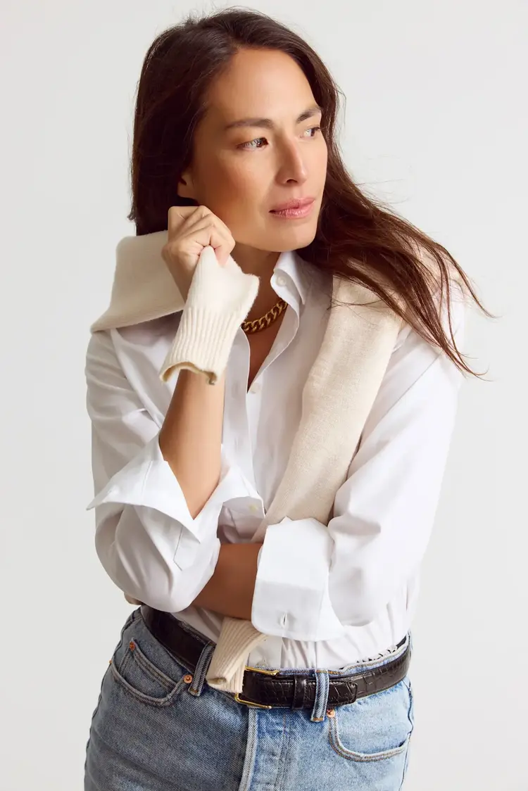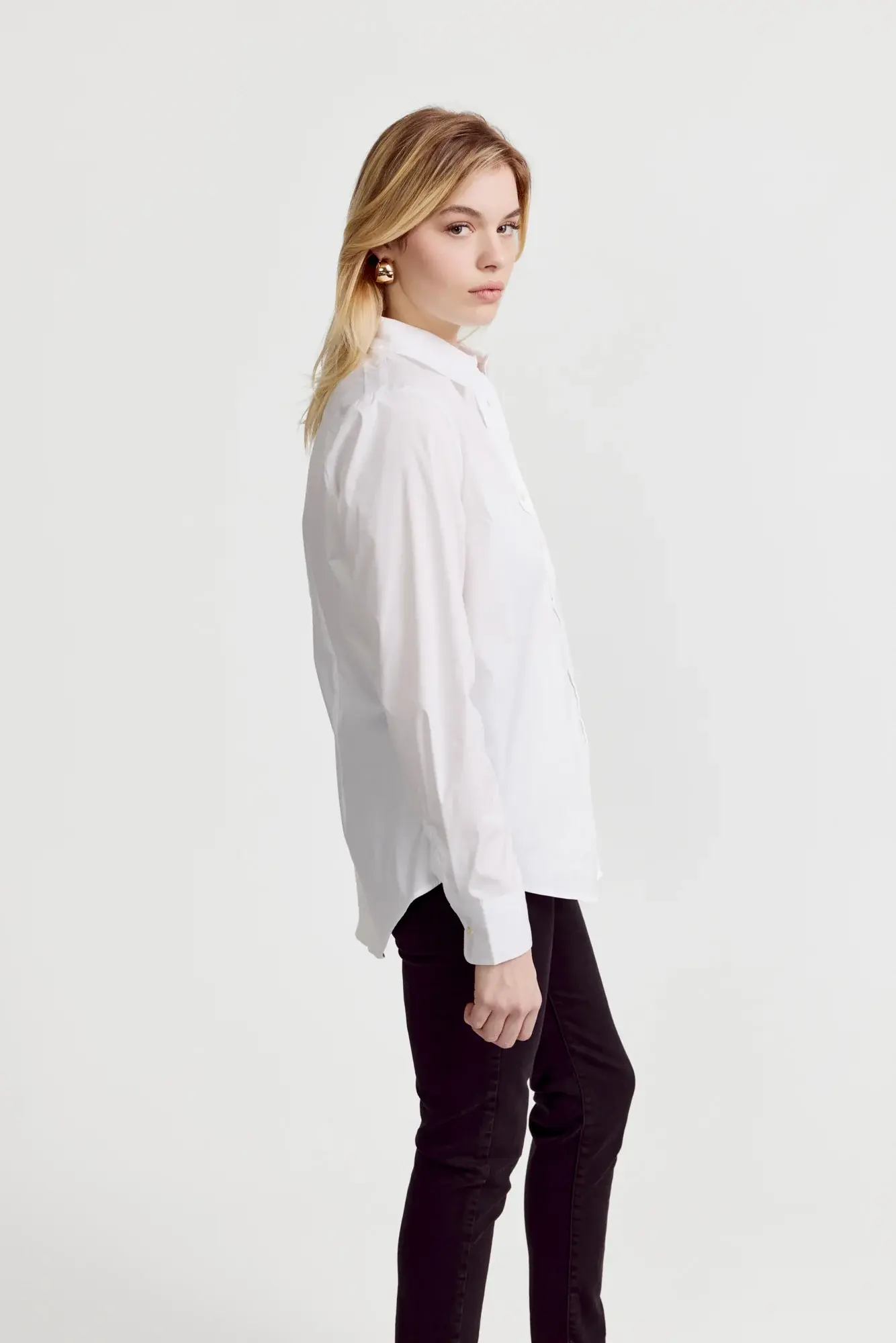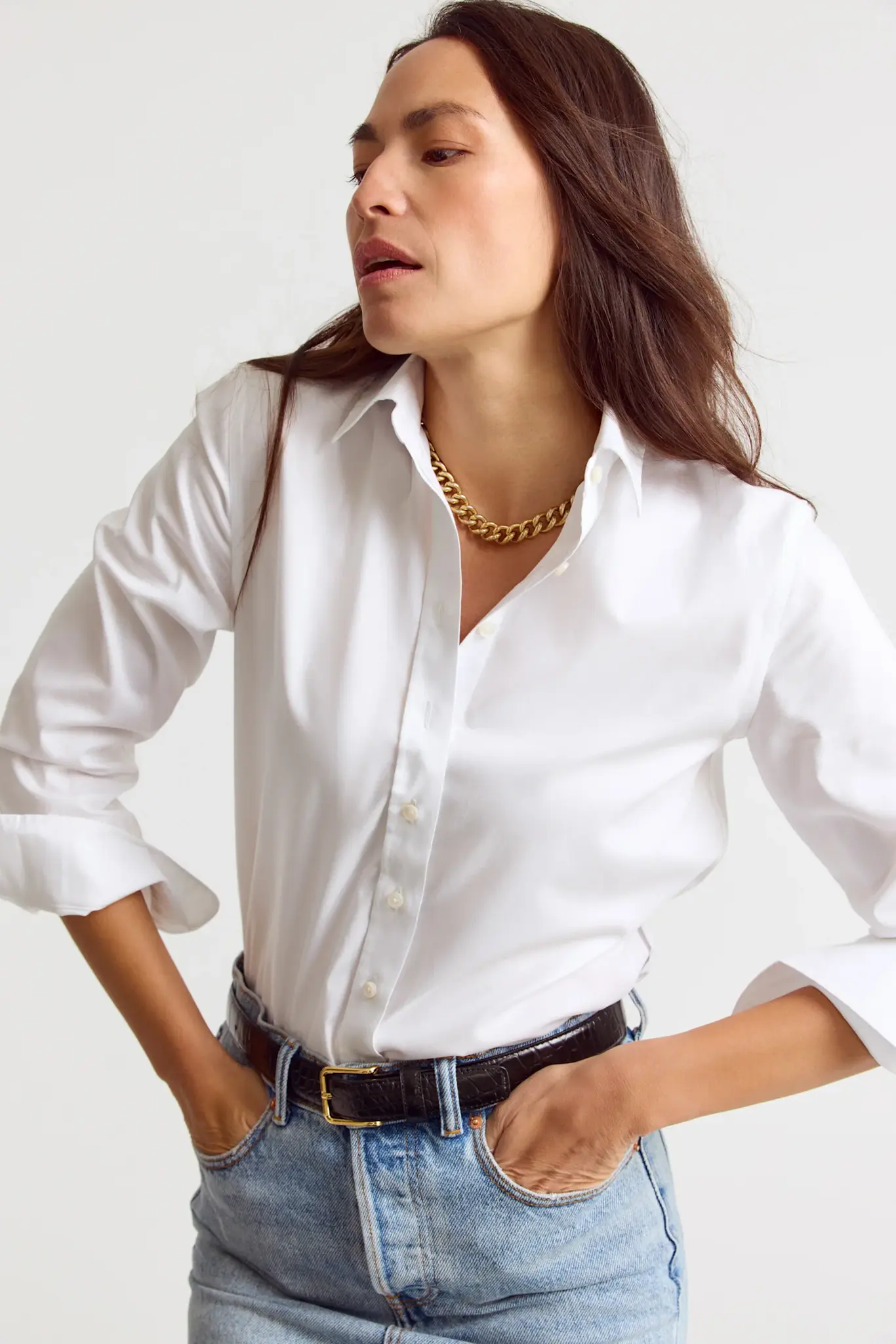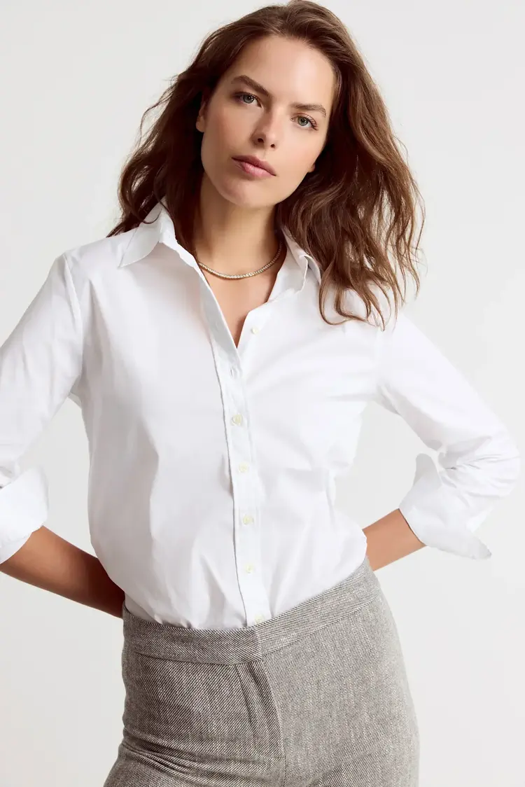 • Our perfect fit cotton stretch button down. We designed our best-selling Icon Shirt to be fitted throughout, giving you a body-hugging shape yet eliminating blouse gape completely.