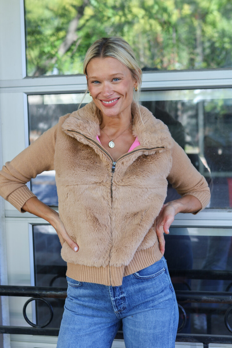 Inspired by classic moto styling, The Moto jacket is reimagined in Wool with faux fur at the collar, hem, and cuffs. Faux leather trim and functional pockets complete this versatile zip-up layer. A bold outer layer with a soft side.