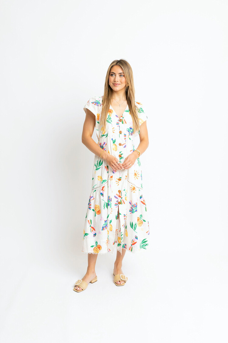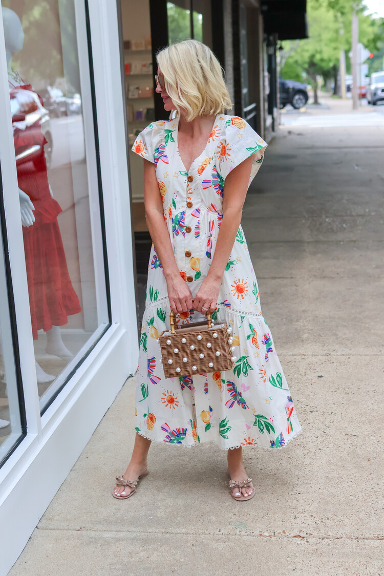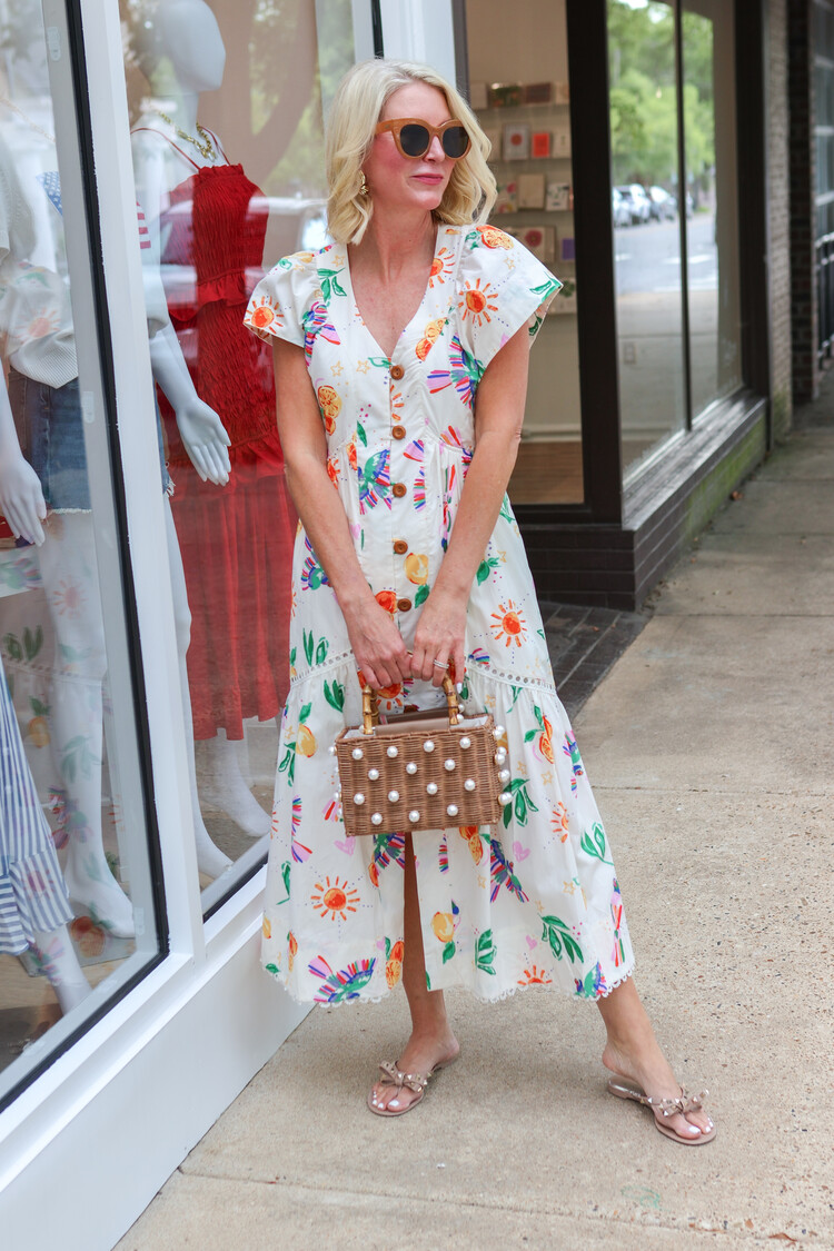The cutest print of the summer! This dress will take you from weekend brunch with friends to Italian vacations. We love the midi length, easy fit, and subtle short sleeves for a little coverage.