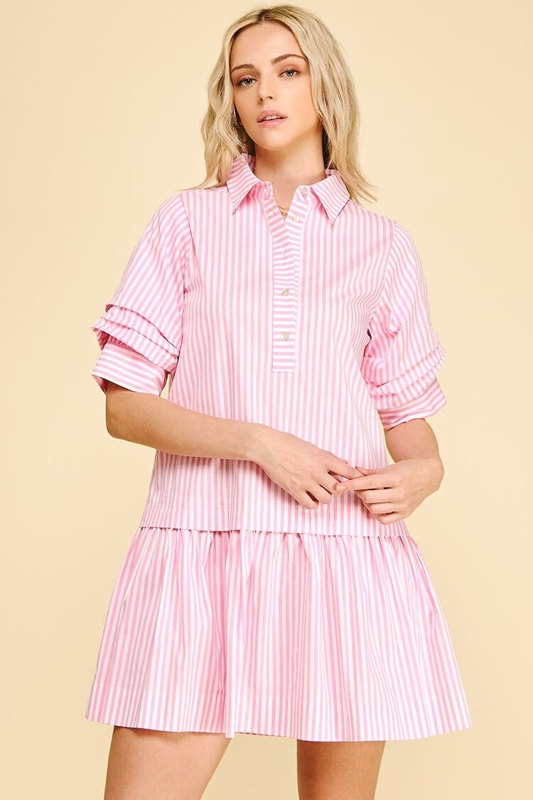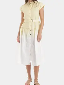 The Zelie Ombre Dress brings a fresh look with its soft yellow gradient and easy fit. A belted waist and button-down front add a classic feel, while cap sleeves keep it cool for sunny days.
