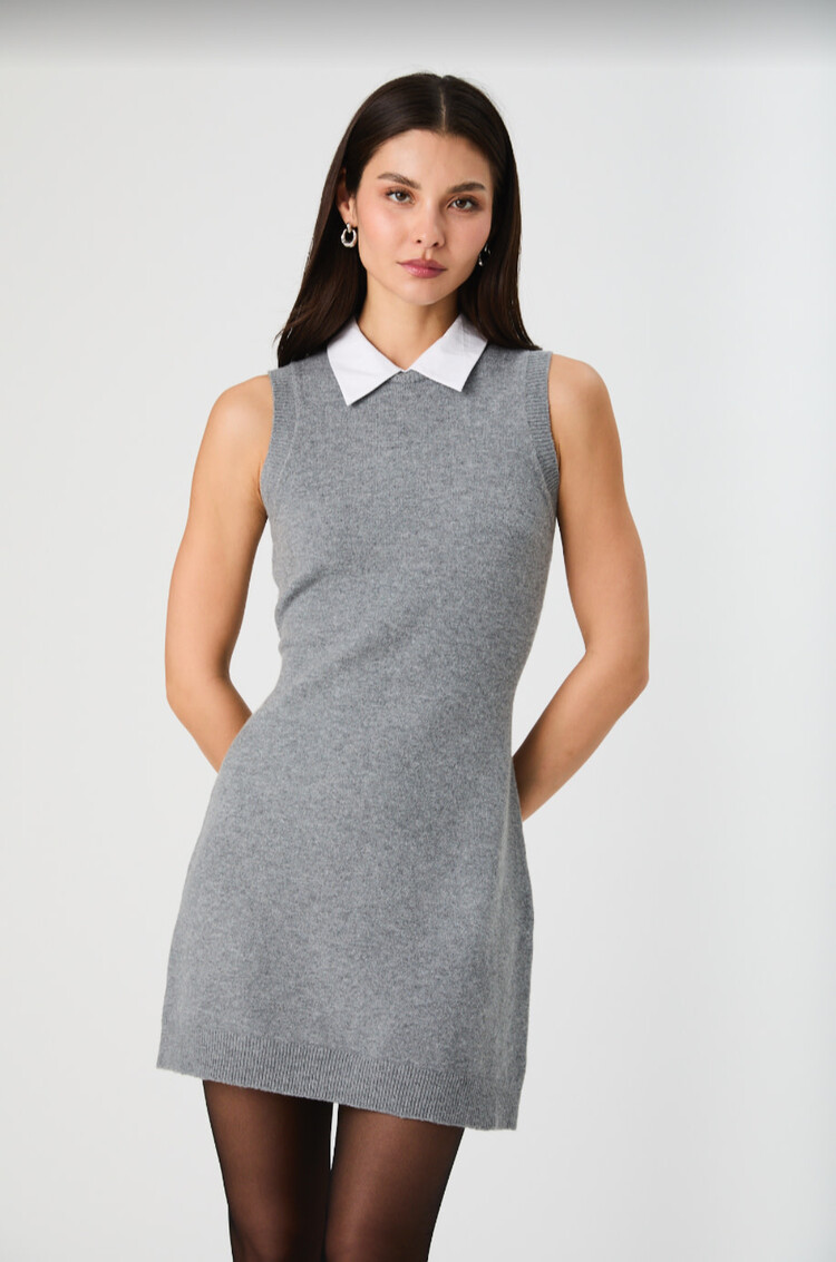 Turtleneck puff short sleeve sweater mini dress in pointelle texture knit fabric. This versatile sweater dress features a ribbed mock neck, puff long sleeve with ribbed cuff, shirred shoulders, and ribbed hem.