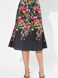 The cut is likely a flattering silhouette—such as A-line, pleated, or midi length—designed for comfortable movement and easy styling. The all-over floral print makes it a statement piece, ideal for injecting color and life into a solid ensemble.