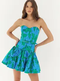 A printed two piece set featuring a sleeveless crop top with a square neckline, hidden side zipper and wide shoulder straps. Paired with a matching high-waisted midi skirt designed with a flattering A-line silhouette. Finished with a side zipper closure.