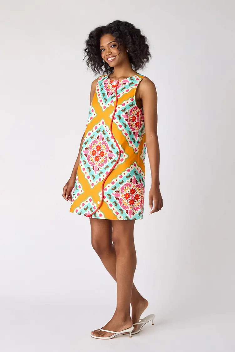 Say hello to your new favorite dress. This chic shift is designed to flatter, featuring an asymmetrical button front with a bold pop of contrasting color. Effortlessly versatile, it transitions from daytime outings to dressed-up evenings with ease.